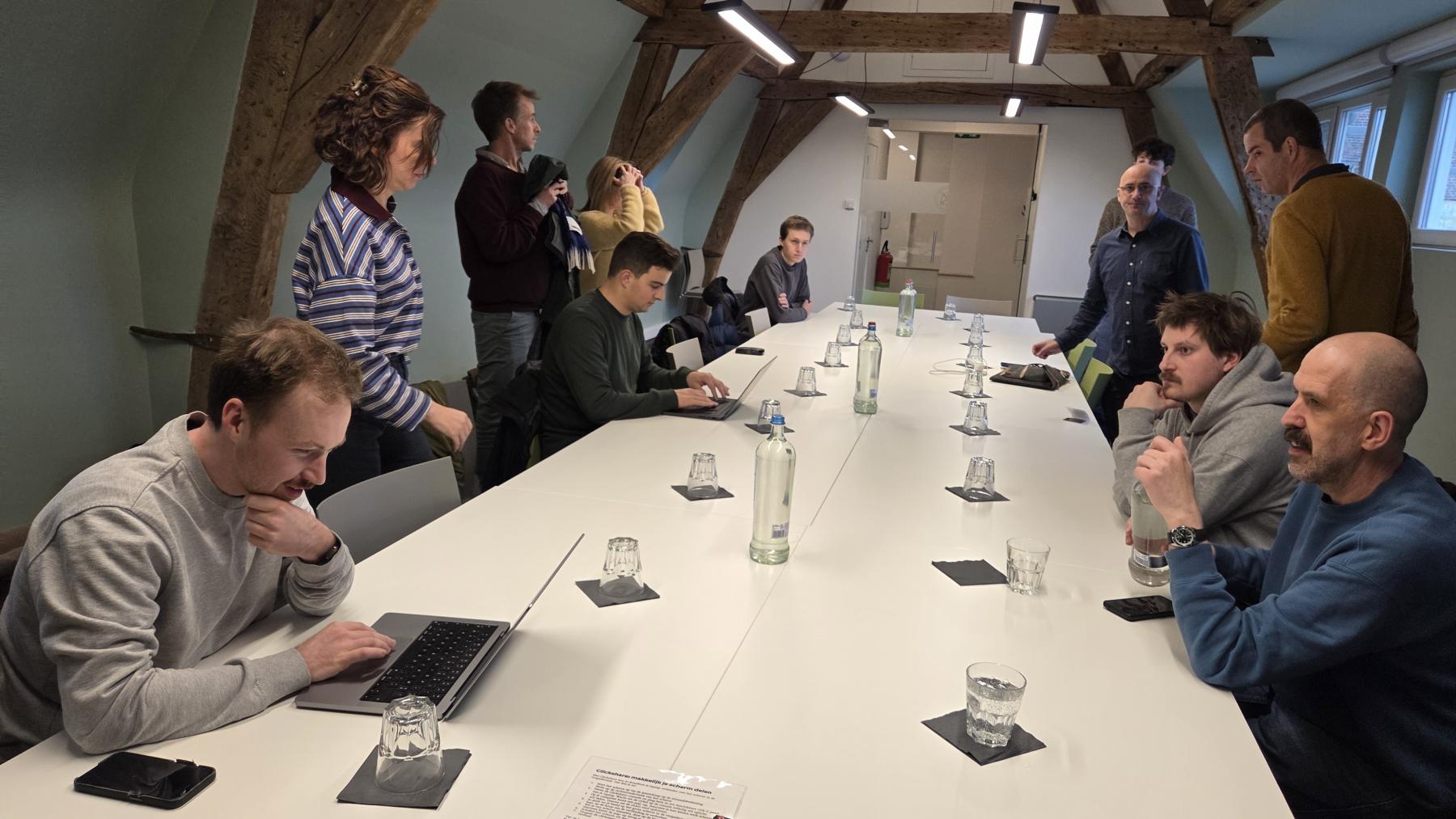 We verzamelden donderdagochtend in ons nieuwe kantoor in Antwerpen, waar de nieuwe collega’s en de collega’s die vooral in Gent werken een rondleiding kregen. Nadien trokken we naar een vergaderzaal voor een originele voorstelronde. Iedereen had vooraf één project gekozen om zichzelf aan de hand daarvan voor te stellen: iets om trots op te zijn, een opdracht waar veel uit geleerd is of een project met onverwachte uitdagingen. Ook de nieuwe collega’s deelden ervaringen uit eerdere functies. Dat zorgde voor een boeiende inkijk in elkaars expertise, aanpak en achtergrond.